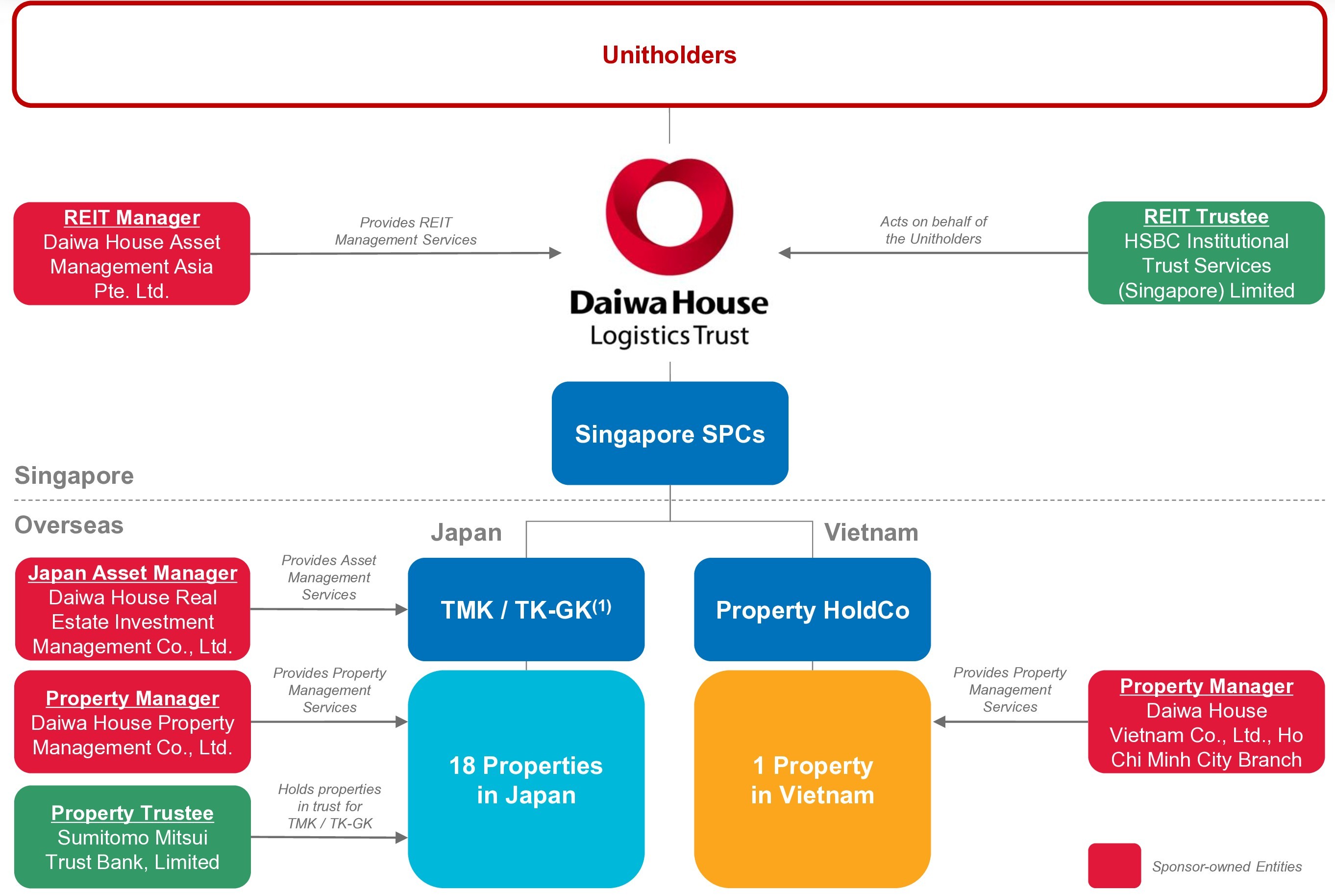 1 DHLT holds the trust beneficial interests of the properties in Japan through the tokutei mokuteki kaisha (“TMK”) structure and the tokumei kumiai–godo kaisha (“TK-GK”) investment structure, which are two typical tax-efficient investment structures adopted by foreign investors for investing in Japanese properties.